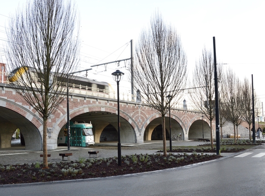 De werken aan het Tramplein in Berchem in de omgeving van de Cogels-Osylei, zijn afgerond. Met knap resultaat. De spoorbruggen zijn door Infrabel vernieuwd en prachtig gerestaureerd.